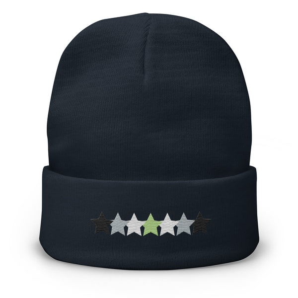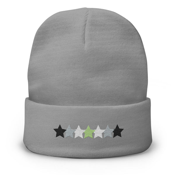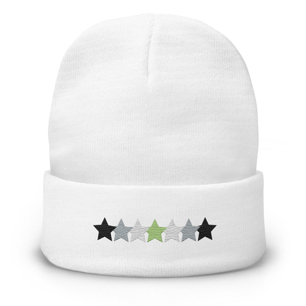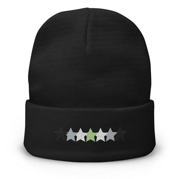 Stay warm while proudly displaying your identity with our Agender Stars Beanie. This premium unisex headwear features beautifully embroidered stars in the agender pride flag colors. The meticulous embroidery work ensures durability while making a bold statement. Perfect for chilly weather and showing your pride year-round – a must-have accessory that combines comfort with authentic self-expression.