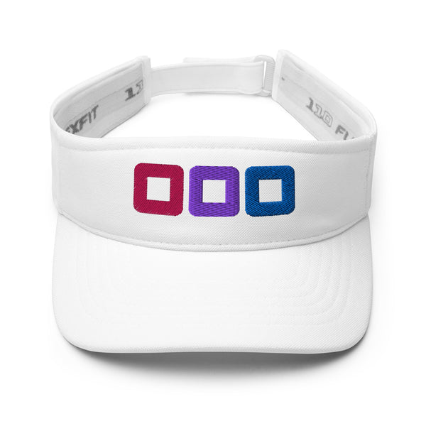 Embrace your identity with our eye-catching Bi Pride Visor. Beautifully embroidered with the bisexual pride flag's signature pink, purple, and blue squares, this unisex hat combines style with meaningful representation. Perfect for sunny pride events or everyday wear, this visor not only protects you from the sun but also lets you showcase your pride with confidence. Make a statement that matters while staying comfortable and looking great.