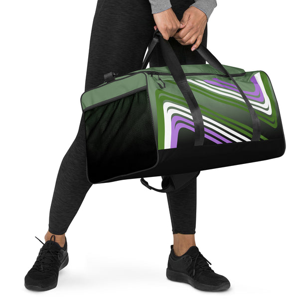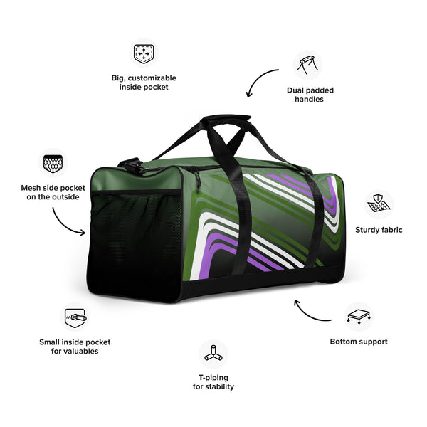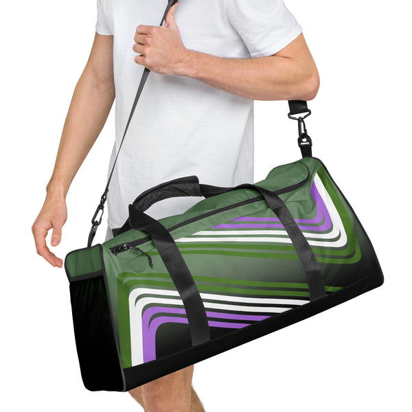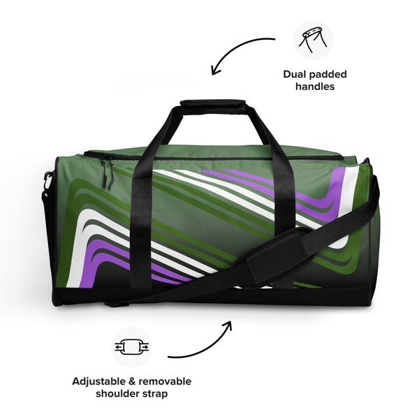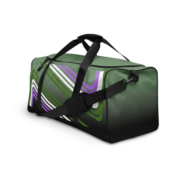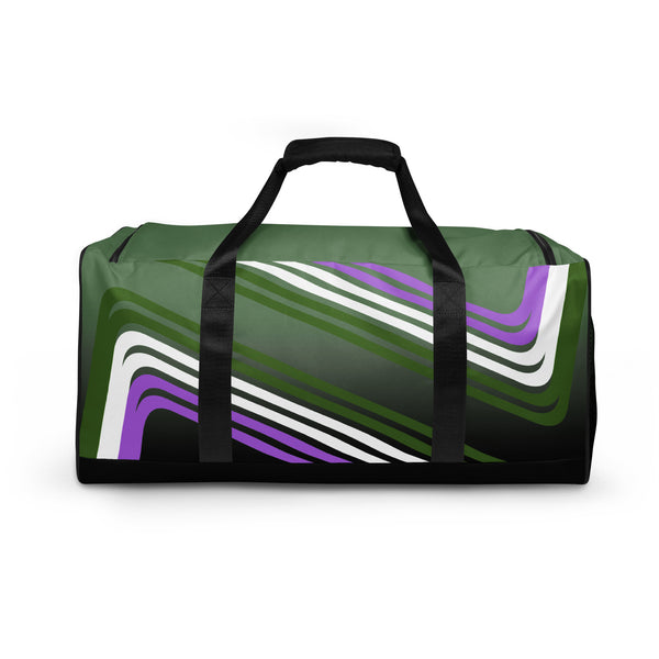 Travel in style and show your pride with our Genderqueer Pride Carry-On Bag! Featuring a striking green to black fade and the iconic stripes of the genderqueer pride flag, this duffel bag is perfect for any journey. Stay organized and make a statement with this must-have travel accessory.