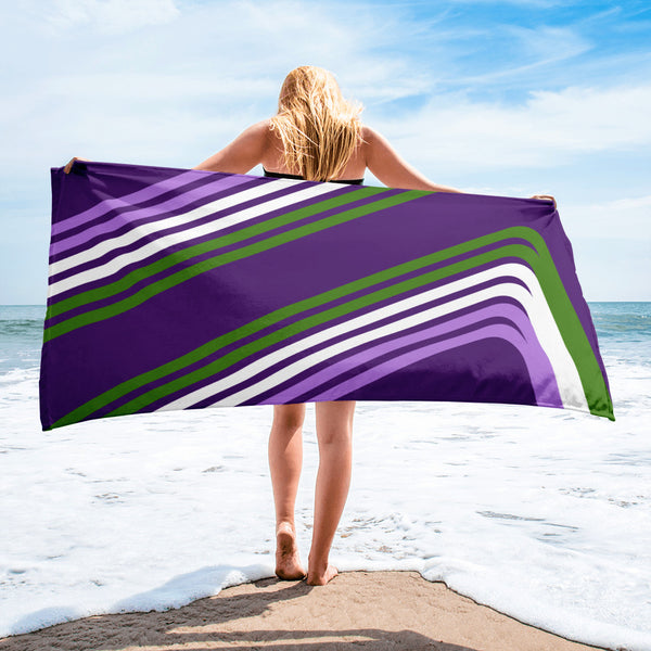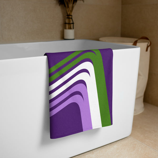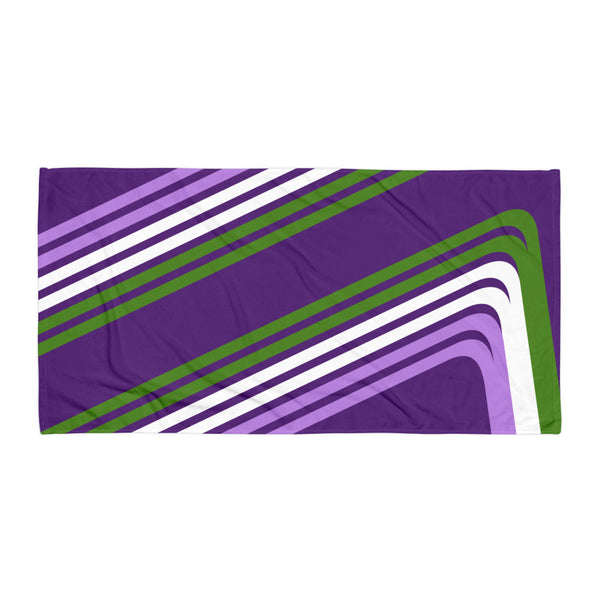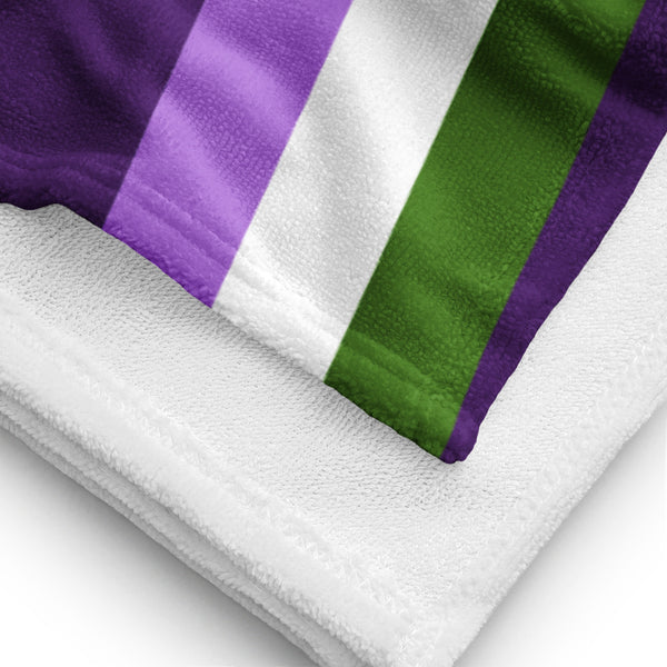 Wrap yourself in pride with our Genderqueer Pride Colors Beach Towel! This vibrant towel features bold, genderqueer flag colored stripes and a soft, luxurious purple material for ultimate comfort. Perfect for a day at the beach or pool, show off your true colors and make a statement with this must-have accessory.