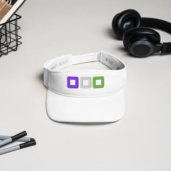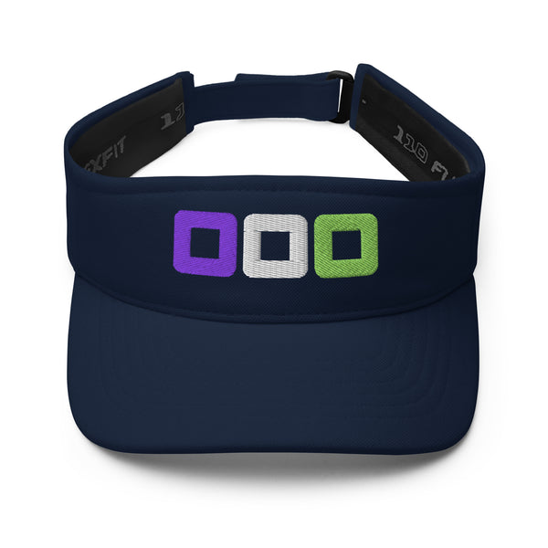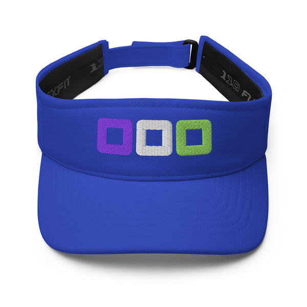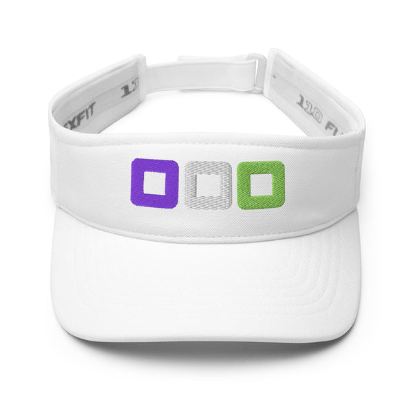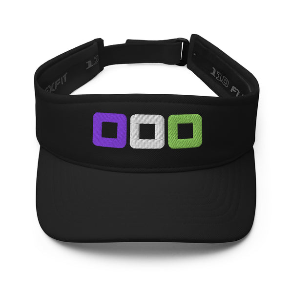 Show your genderqueer pride with our stylish embroidered visor. Featuring the distinctive lavender, white, and green squares of the genderqueer pride flag, this unisex accessory offers both sun protection and a bold statement of identity. Perfect for pride events, outdoor activities, or everyday wear – celebrate who you are while staying comfortable.
