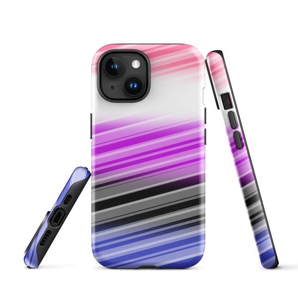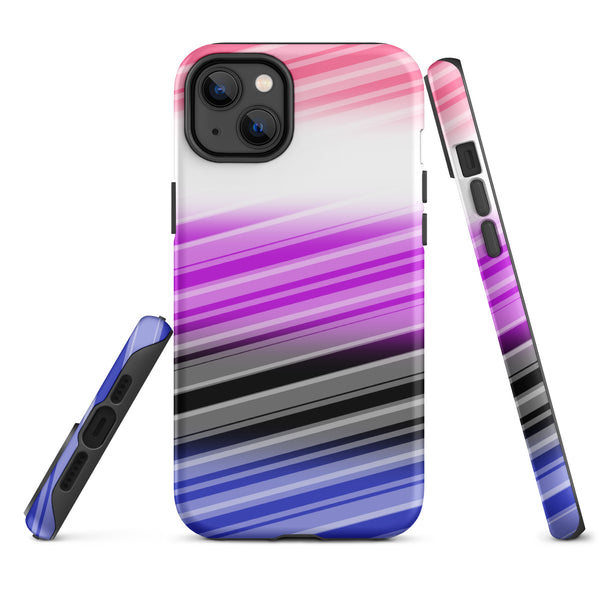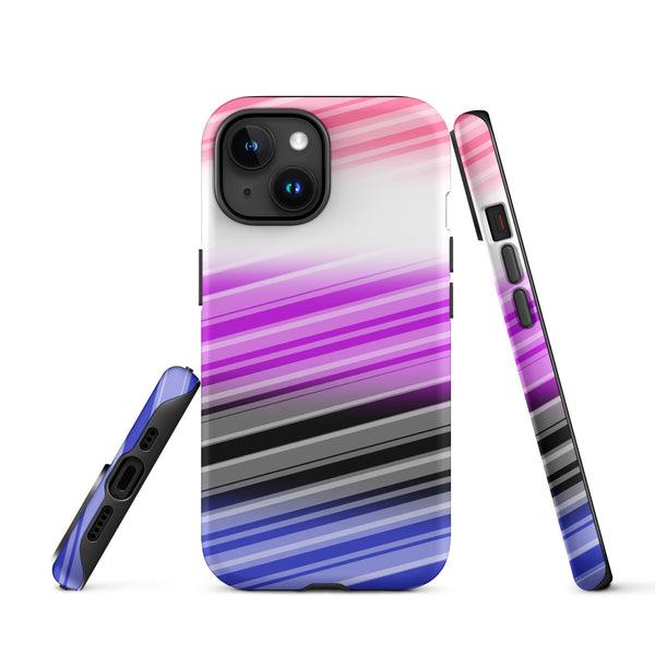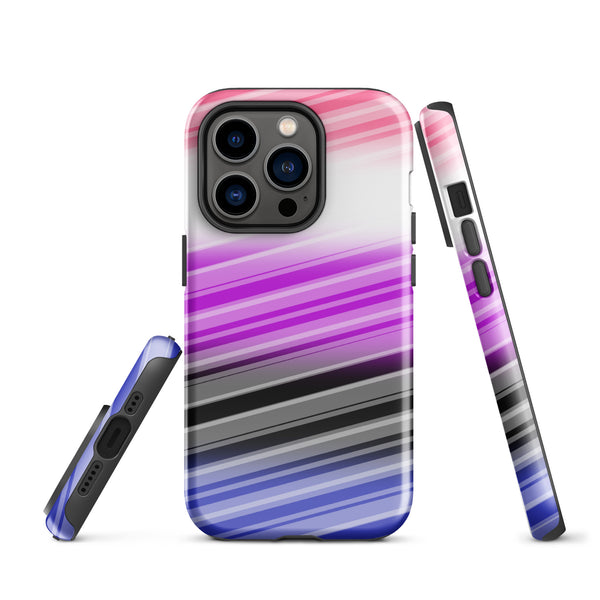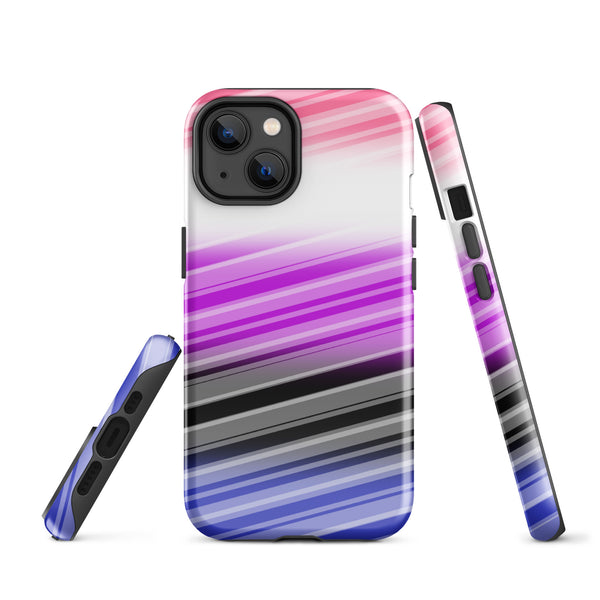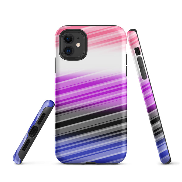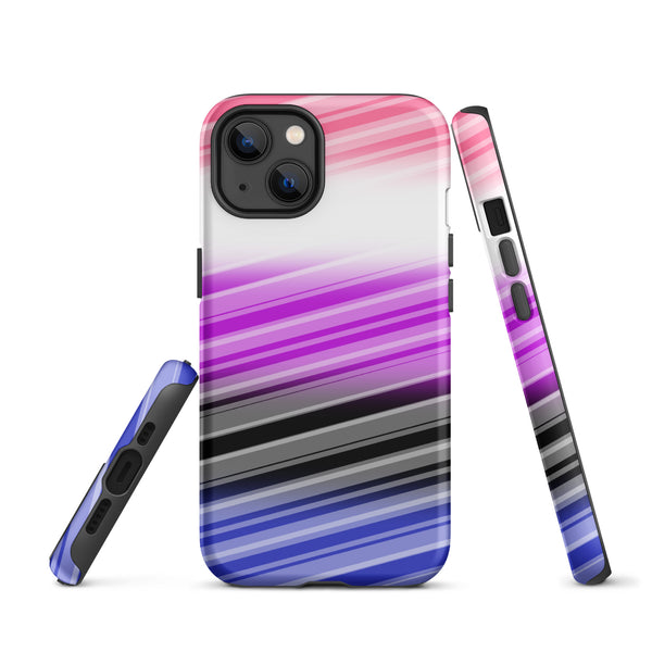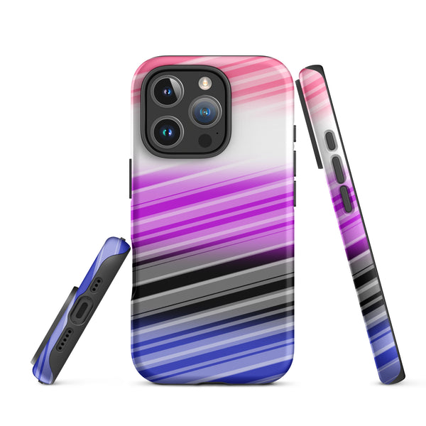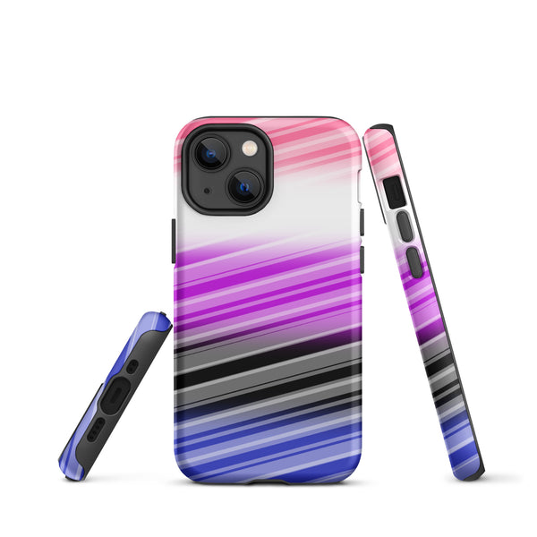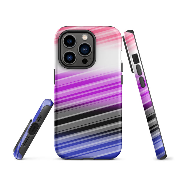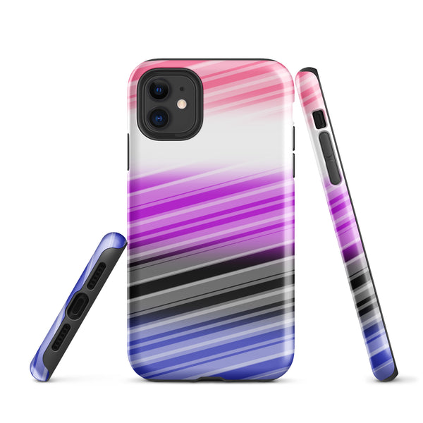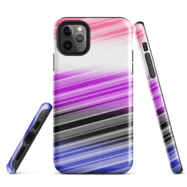 Protect your iPhone® in style with our tough, genderfluid inclusive case featuring diagonal faded stripes. Show your unique style while keeping your phone safe. Durable material ensures long-lasting protection. Truly inclusive, this case is perfect for anyone looking to add a touch of flair to their phone.
