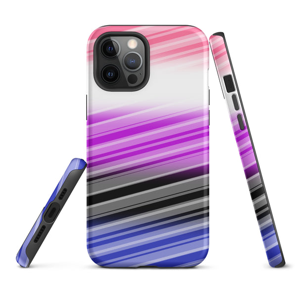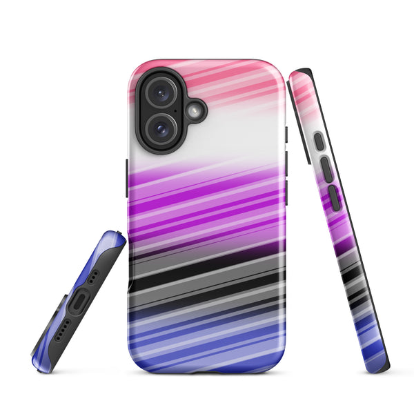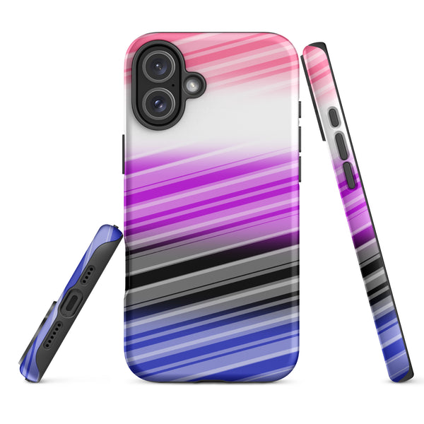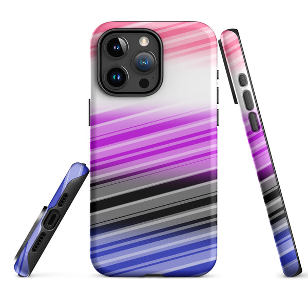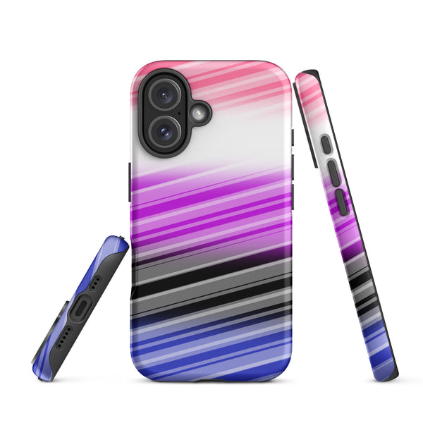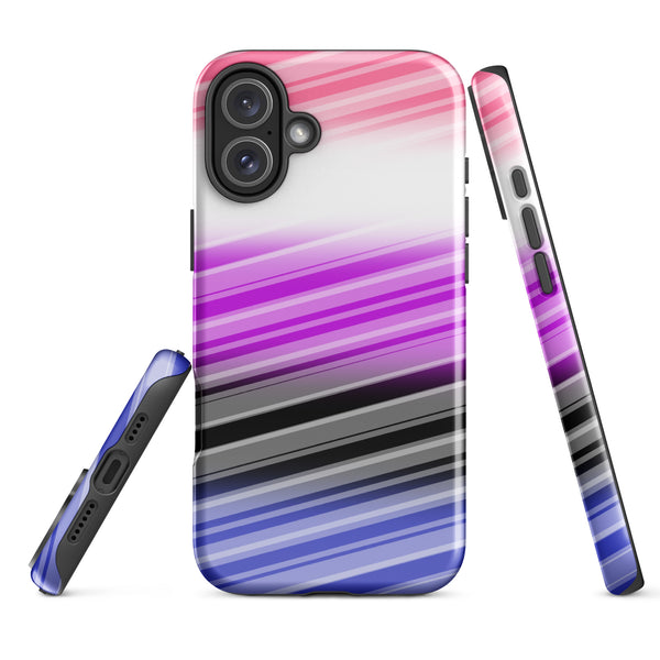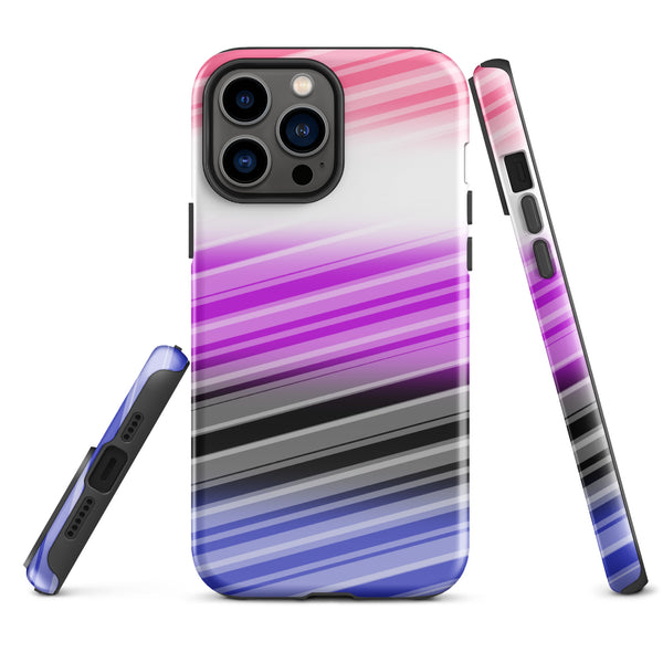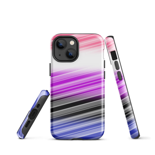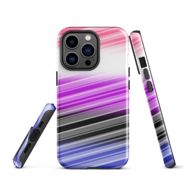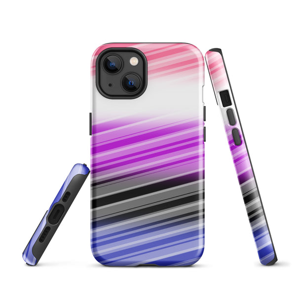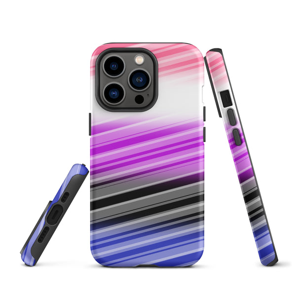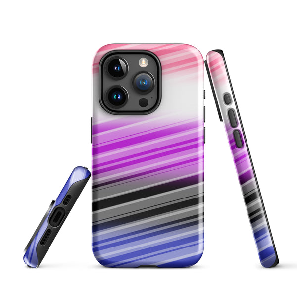 Protect your iPhone® in style with our tough, genderfluid inclusive case featuring diagonal faded stripes. Show your unique style while keeping your phone safe. Durable material ensures long-lasting protection. Truly inclusive, this case is perfect for anyone looking to add a touch of flair to their phone.
