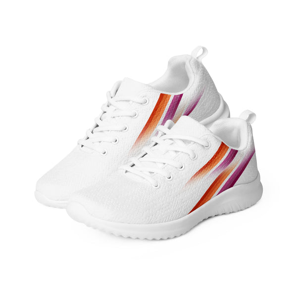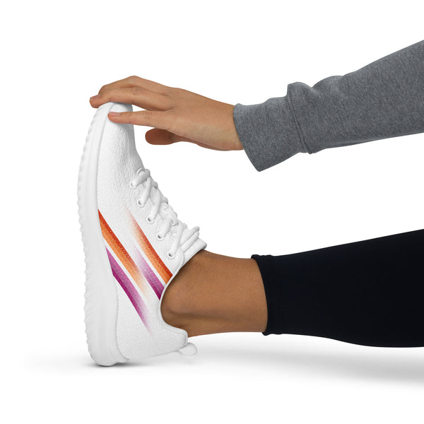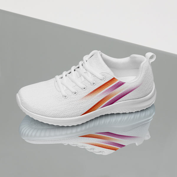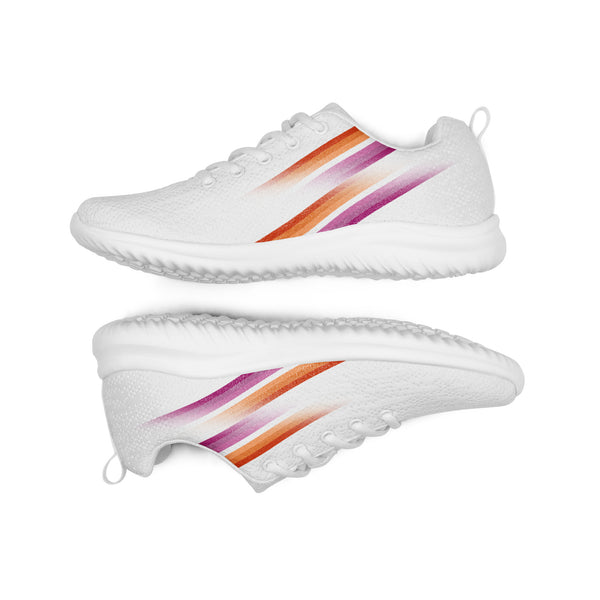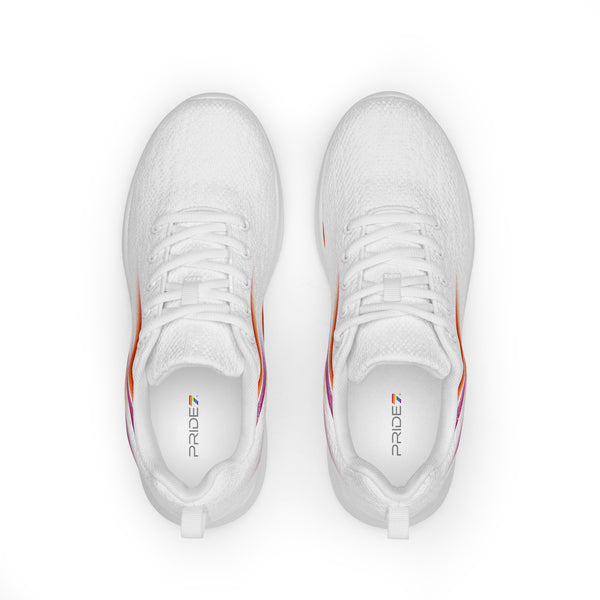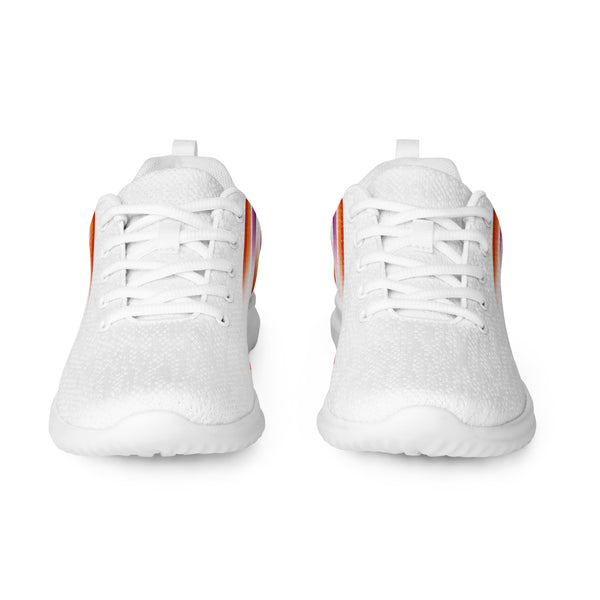 Walk with pride and style in these white shoes featuring a bold, double-faded lesbian pride flag design. Show your support and make a statement with each step. Perfect for any occasion, these sneakers bring comfort and visibility to your outfit.
