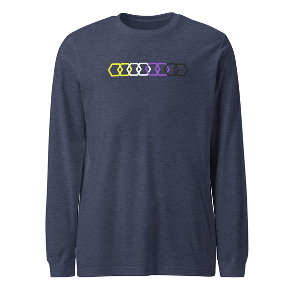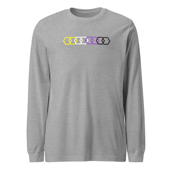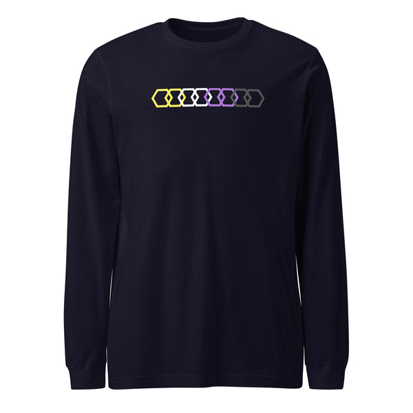 Show off your pride and support for the non-binary community with our unique long sleeve tee featuring a vibrant beehive design. Made with high-quality materials, this Unisex tee is not only comfortable but also makes a statement. Perfect for anyone looking to express themselves and make a positive impact.
