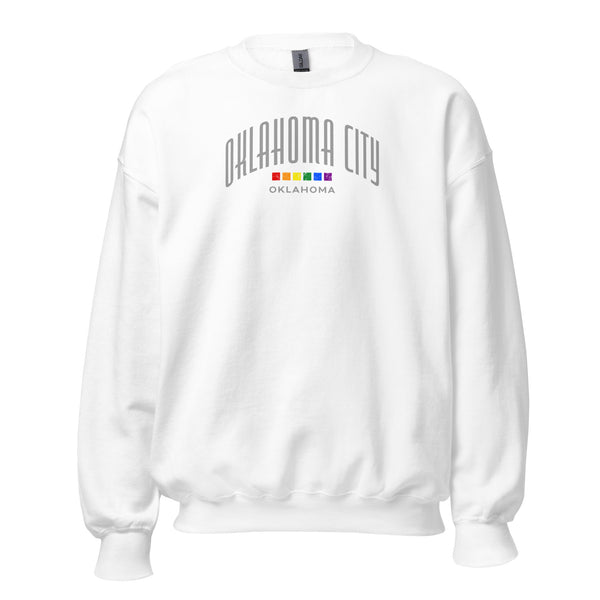 Celebrate pride with this unisex Oklahoma City Gay Pride Sweatshirt, featuring stylish arched lettering that stands out. Crafted for comfort and inclusivity, it’s perfect for showing your support and pride in any setting. Whether at a parade or casual outing, this sweatshirt combines bold design with cozy wearability.