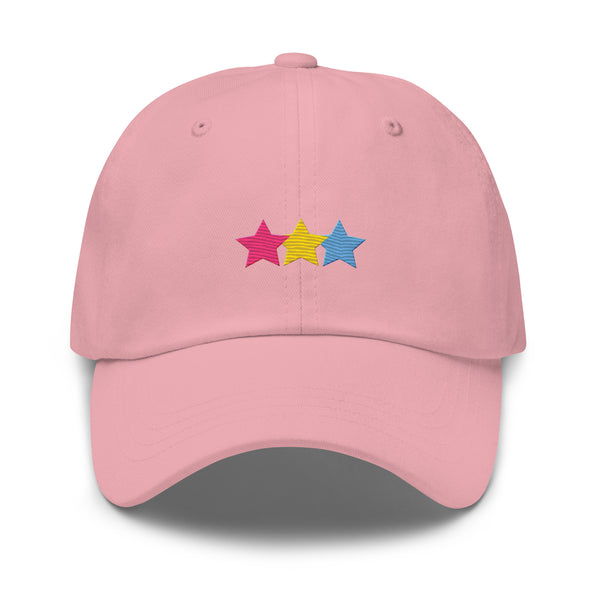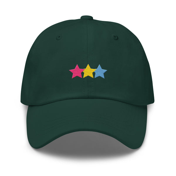 Boldly showcase your identity with our Pansexual Stars Hat. This head-turning accessory features vibrant pan pride colored stars meticulously embroidered for maximum impact. The unisex design ensures everyone can rock this statement piece with confidence. Wear your pride without compromise – this hat doesn't just accessorize, it announces.