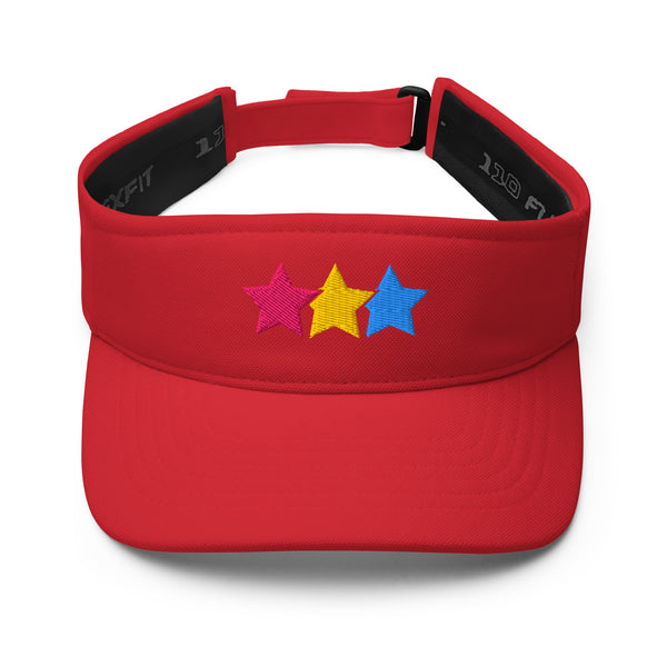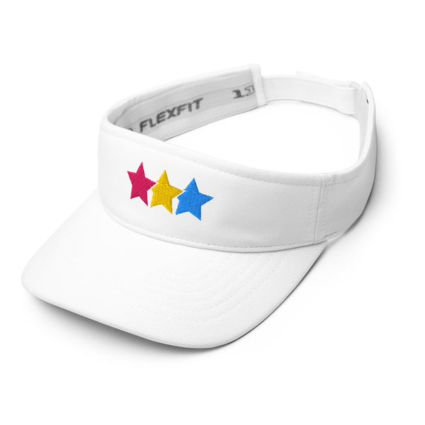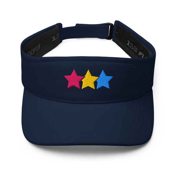 Show off your pan pride with our stylish Pansexual Stars Visor. Featuring beautifully embroidered stars in the vibrant pink, yellow, and blue colors of the pansexual flag. This eye-catching headwear not only shields you from the sun but makes a bold statement about your identity. Perfect for pride events, summer outings, or everyday wear. Don't just accessorize—celebrate who you are!
