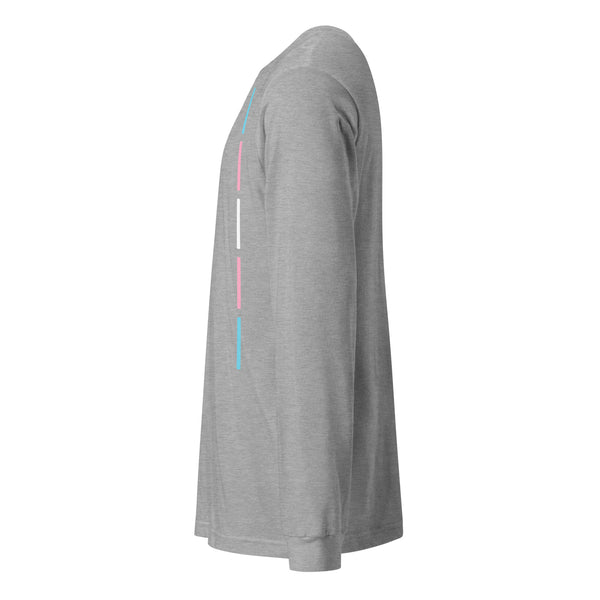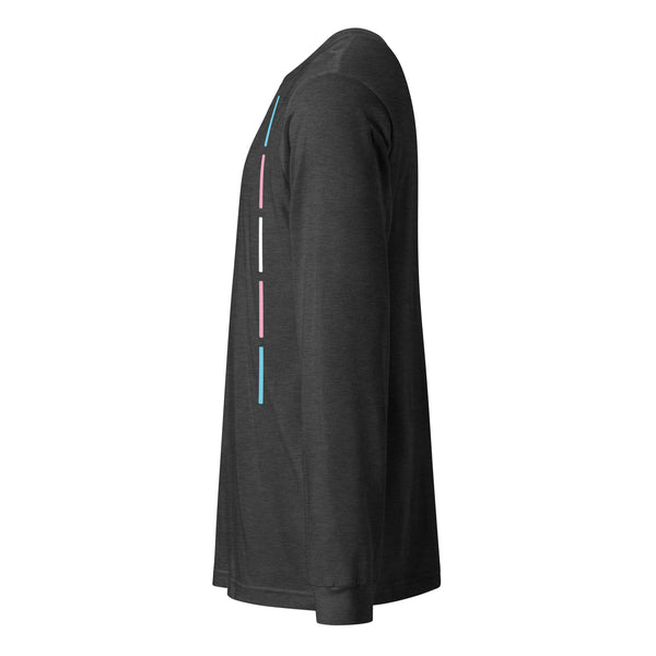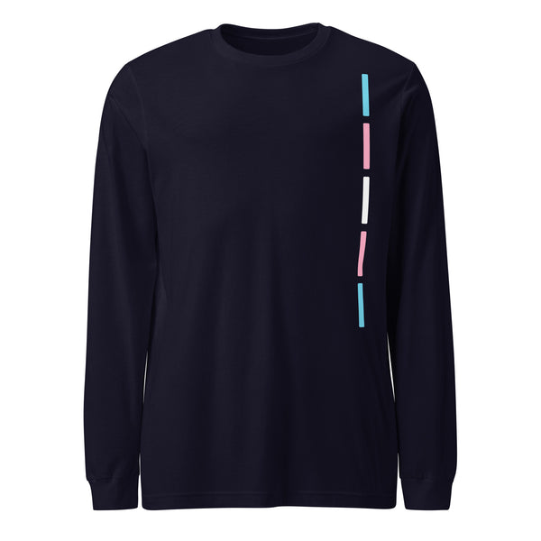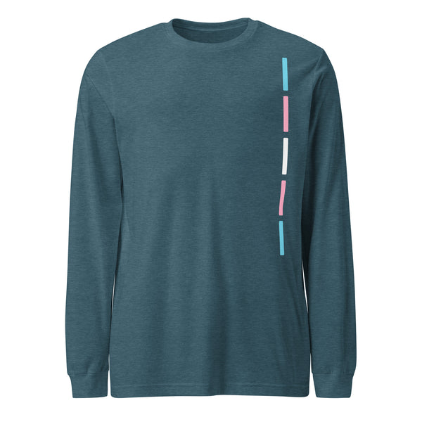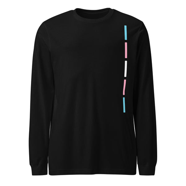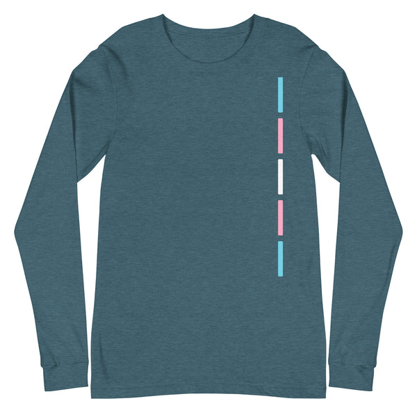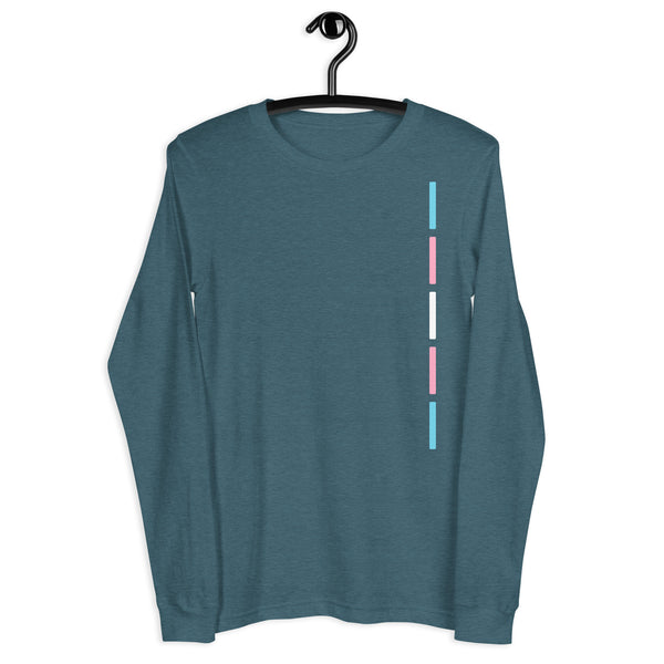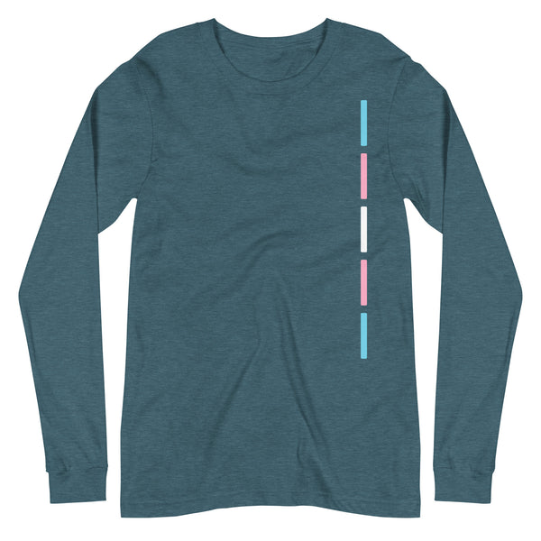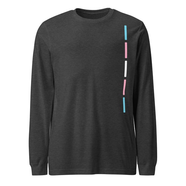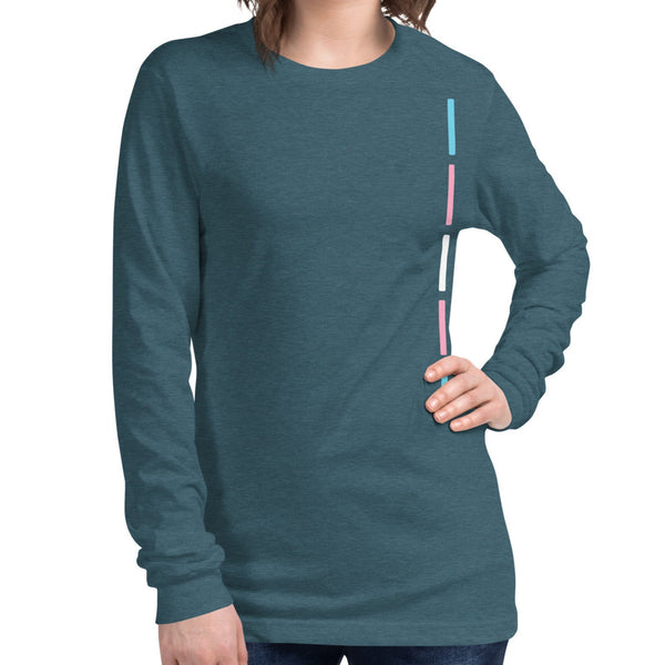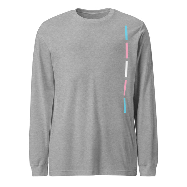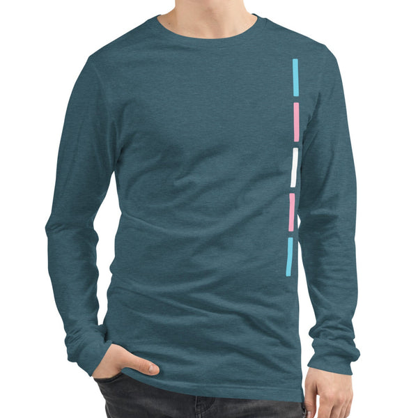 Embrace yourself in this classic Transgender Flag Long Sleeves T-Shirt! The skinny vertical transgender pride flag design makes a subtle yet powerful statement. Perfect for everyday wear, this unisex shirt is a must-have for those who proudly support the Transgender community.