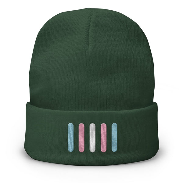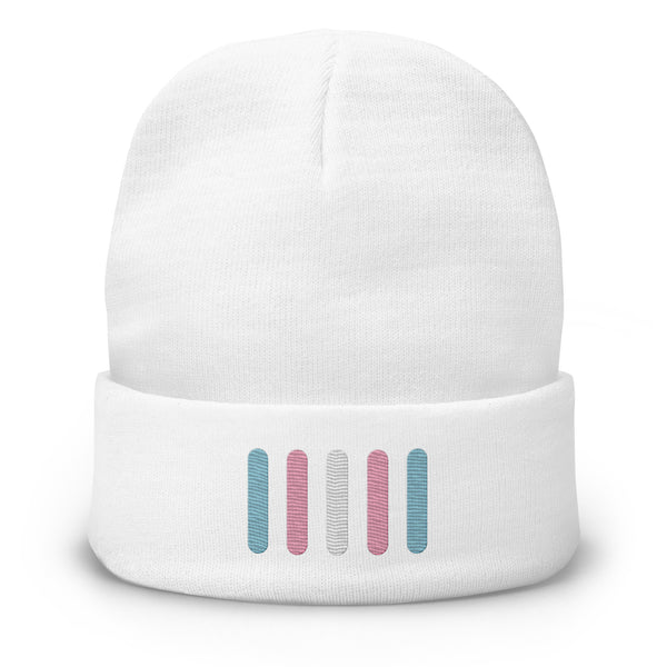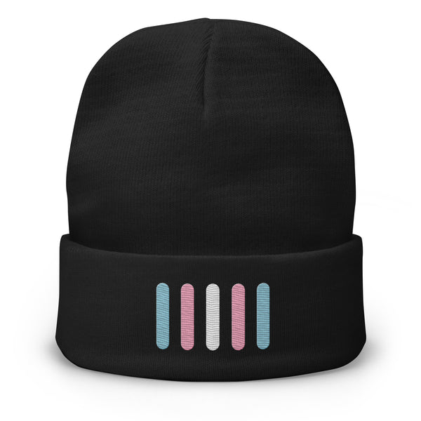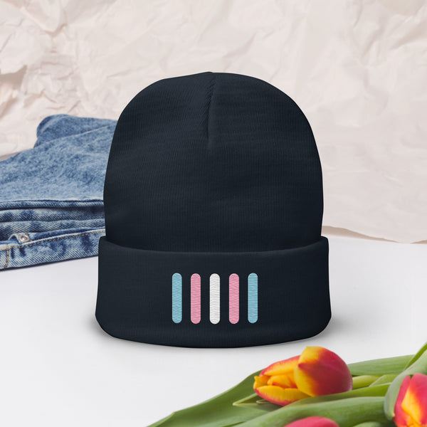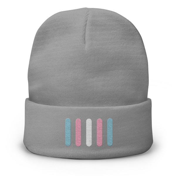 Rock your identity with our Transgender Striped Beanie! This snuggly unisex hat boasts the trans pride flag colors in fabulous embroidered stripes. Perfect for chilly days and warm celebrations alike! The detailed embroidery adds an extra touch of quality that'll make heads turn. Wear your pride on your head – literally!