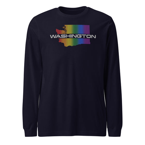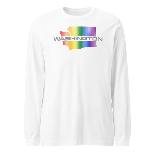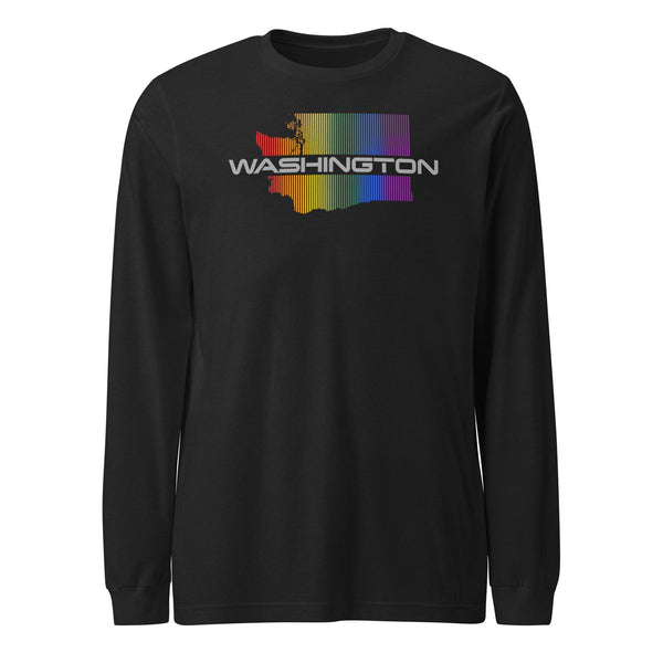 Celebrate pride and unity with this Washington Rainbow Pride Long Sleeves Shirt. Featuring a vibrant map of Washington state adorned with rainbow-colored stripes, this unisex shirt proudly showcases your support for the LGBT+ community. Crafted for comfort and style, it’s perfect for expressing your identity or standing in solidarity at any event. Wear your pride boldly and comfortably all year round.